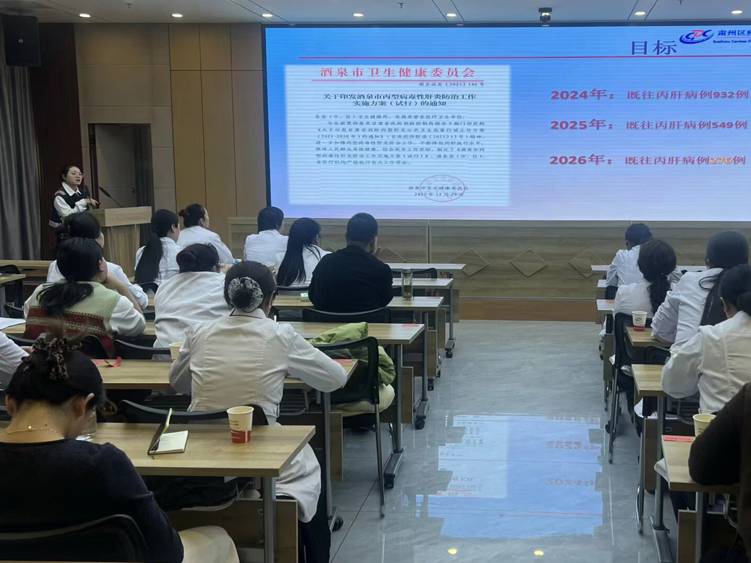 为进一步贯彻落实《肃州区遏制与防治艾滋病规划(2025-2030年)》、《肃州区消除丙型肝炎公共卫生危害行动方案(2021-2030年)》、《肃州区性病防治管理办法》及《肃州区猴痘防控方案》,提升全区艾滋病性病丙肝猴痘防治工作质量,推动“多病同防”工作纵深发展,夯实工作基础。近日,肃州区疾控中心举办2026年艾滋病性病丙肝猴痘防治工作培训会,肃州区辖区综合医院疾控专干、社区卫生服务中心、乡镇卫生院疾控专干及疾控相关工作人员共80余人参加培训。