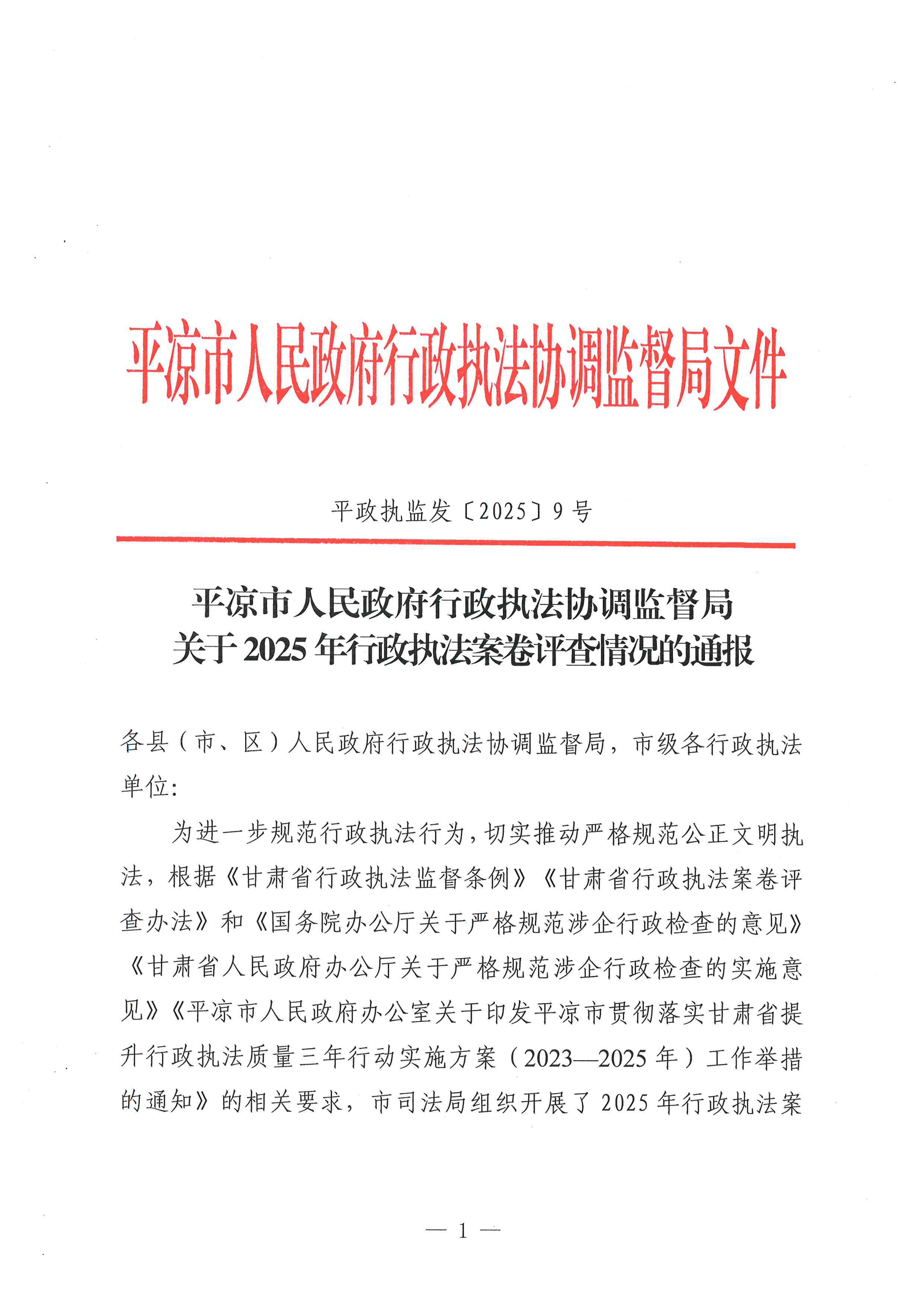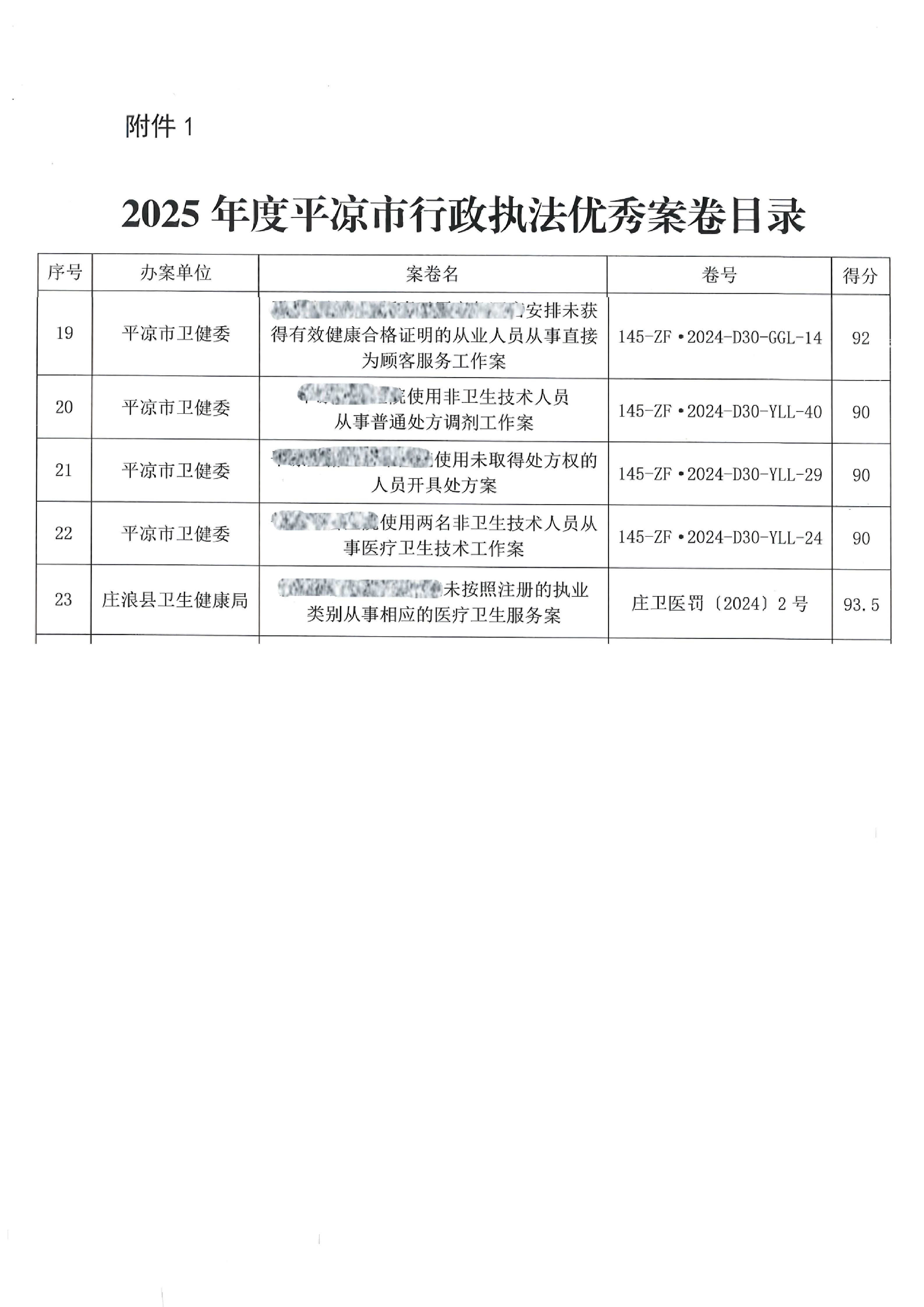 近日,平凉市司法行政机关2025年度全市行政执法案卷评查结果揭晓。本次评查采取各级行政执法部门自查自评、市县司法行政机关随机抽查的方式开展,共随机抽取行政执法案卷566件,全市32件案卷成功入选2025年度平凉市行政执法优秀案卷目录,其中平凉市、庄浪县疾控中心(卫生监督所)承办的5件卫生健康监督执法案卷凭借规范的办理流程、精准的法律适用和良好的社会效果获评优秀案卷。