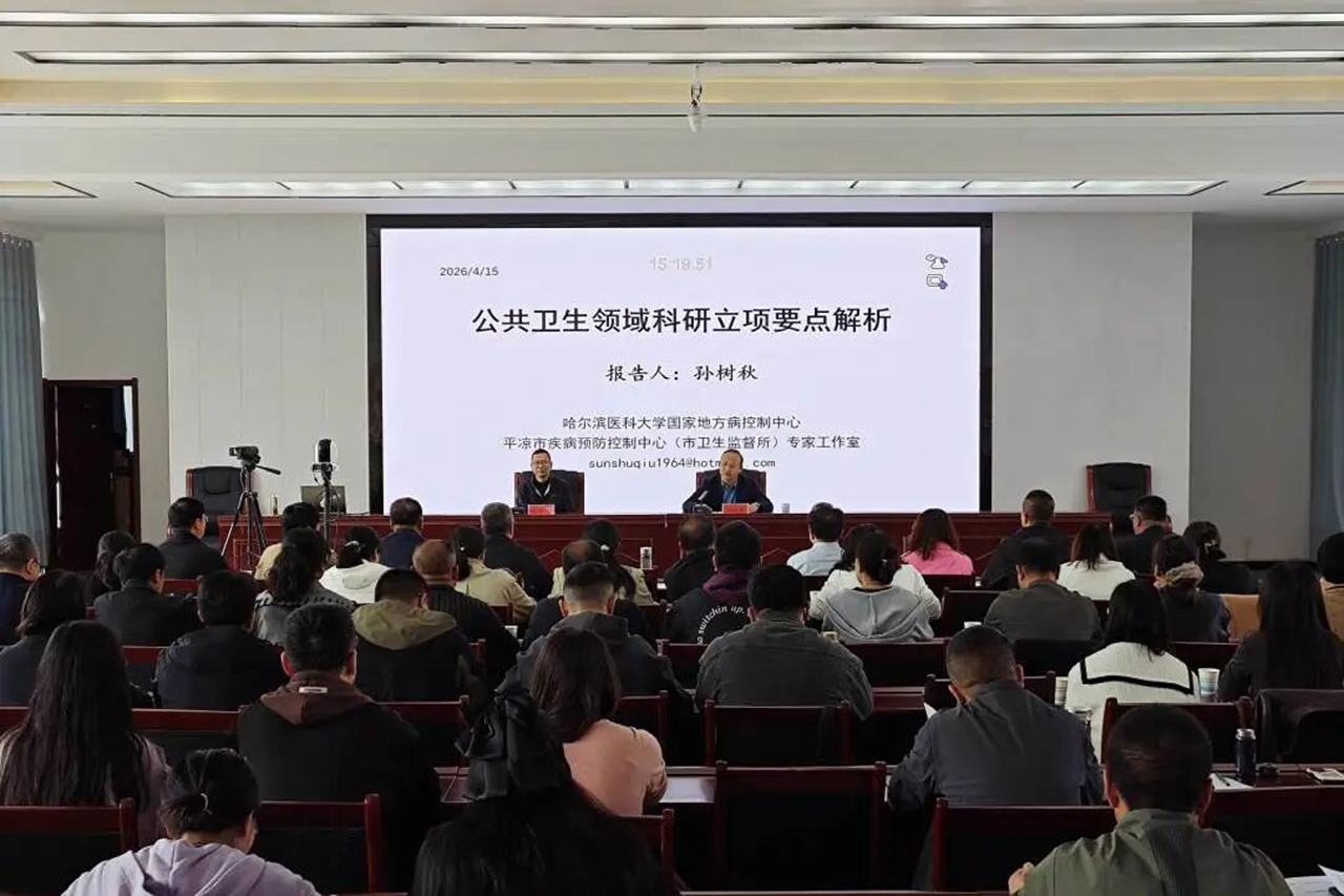 为深入落实市疾控中心“疾控大讲堂”年度工作计划,推进“孙树秋专家工作室”学术建设,4月15日,市疾控中心组织开展孙树秋教授“公共卫生工作科研立项要点解析”专题讲座。本次讲座以视频会议形式举行,在市疾控中心设主会场,各县(市、区)设分会场,全市各级疾控机构、医疗机构公共卫生专业技术人员及平凉市传染病应急专业人才能力提升培训班全体学员共400余人参加培训。