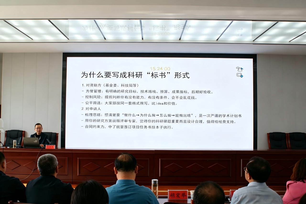 讲座中,孙树秋教授紧密结合我市公共卫生工作实际,精准聚焦专业技术人员科研工作中的短板与难点,围绕科研选题方向、立项申报技巧、课题设计思路等关键内容,通过系统深入的理论讲解、典型详实的案例分析,为参训人员带来一场兼具专业性、实用性与指导性的学术盛宴,有效拓宽了科研视野、明晰了工作思路。