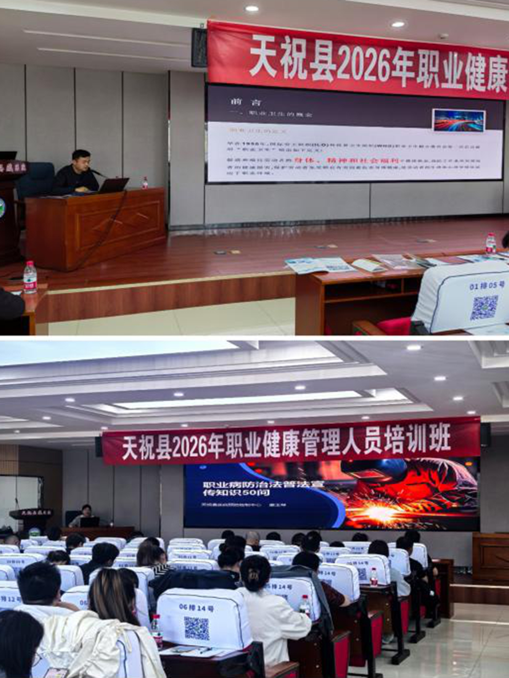 为强化用人单位职业病防治主体责任,规范职业健康管理工作,落实职业健康相关法律法规及工作部署,进一步提升企业职业健康管理水平,提高用人单位主要负责人的法律责任意识和职业卫生管理人员的业务水平,更好保障劳动者职业健康权益。4月17日,由县卫健局、县总工会主办、县疾控中心(县卫生监督所)承办了天祝县2026年全县职业健康管理人员培训班,103余家用人单位的200余名主要负责人及职业卫生管理人员参加了培训。此次参训覆盖面广、参与度高,保障了培训工作有序开展。