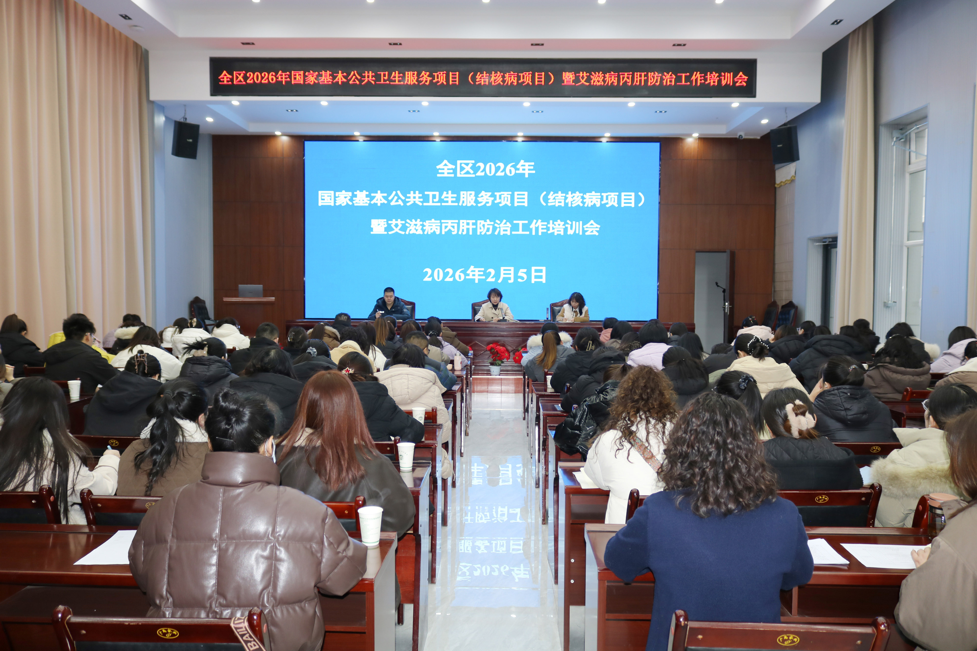 为进一步提升基层医疗卫生机构专业人员业务能力与水平,推动结核病、艾滋病、丙肝防治工作再提质效,确保为广大人民群众提供满意的公共卫生服务,2月5日,甘州区疾控中心举办了“2026年国家基本公共卫生服务项目(结核病)暨艾滋病丙肝防治工作培训会”。各乡镇卫生院、社区卫生服务中心结核病及艾滋病专干、区疾控中心结艾科全体人员,共计90余人参加了此次培训。