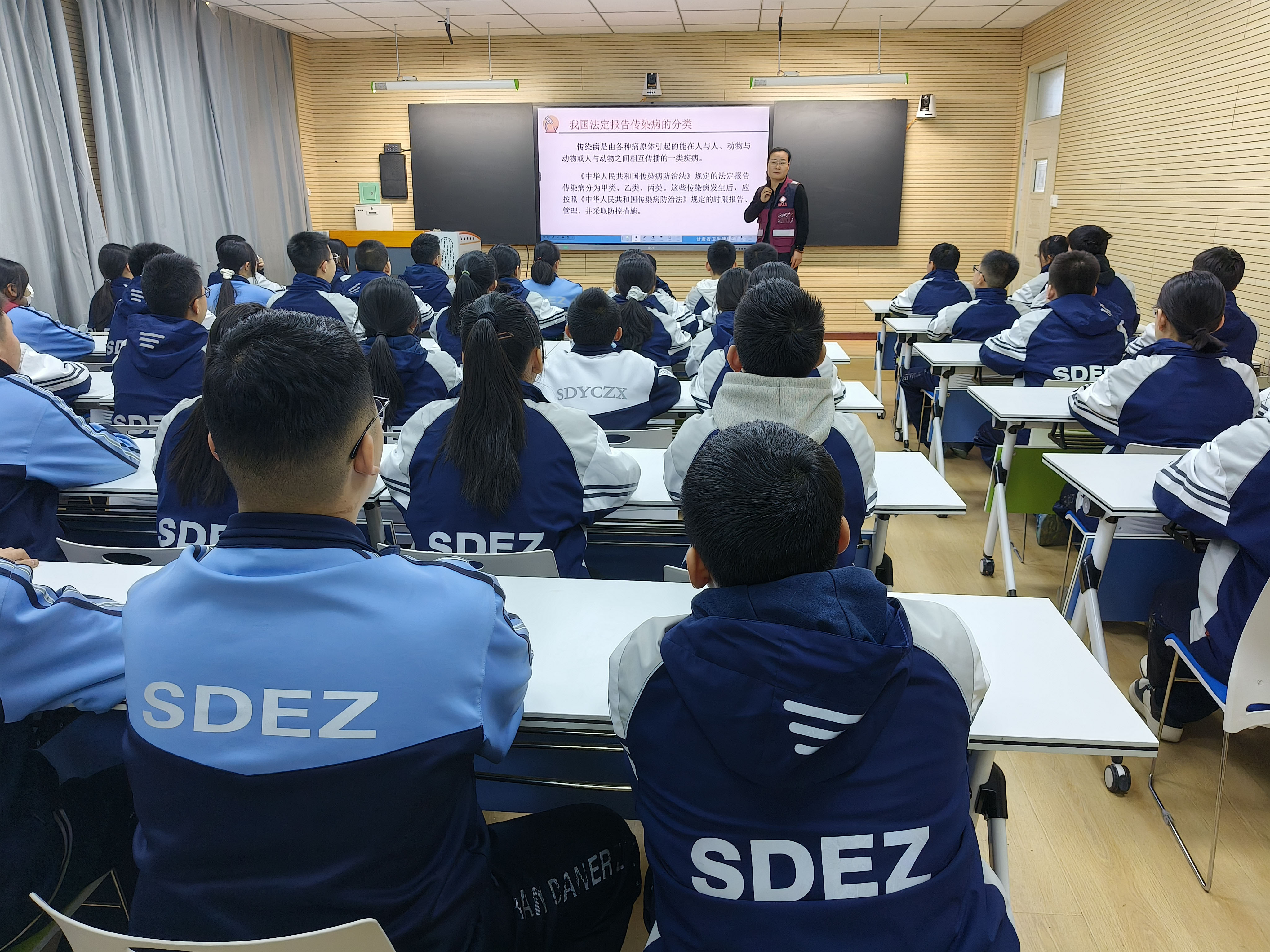 讲座中,疾控中心工作人员结合校园人群特点,用通俗易懂的语言,重点讲解传染病预防、心理健康与情绪调适等内容。工作人员结合典型案例,纠正健康误区,普及科学防护知识,现场开展互动问答,耐心解答师生关心的健康问题,引导大家树立“每个人是自己健康第一责任人”的理念。
