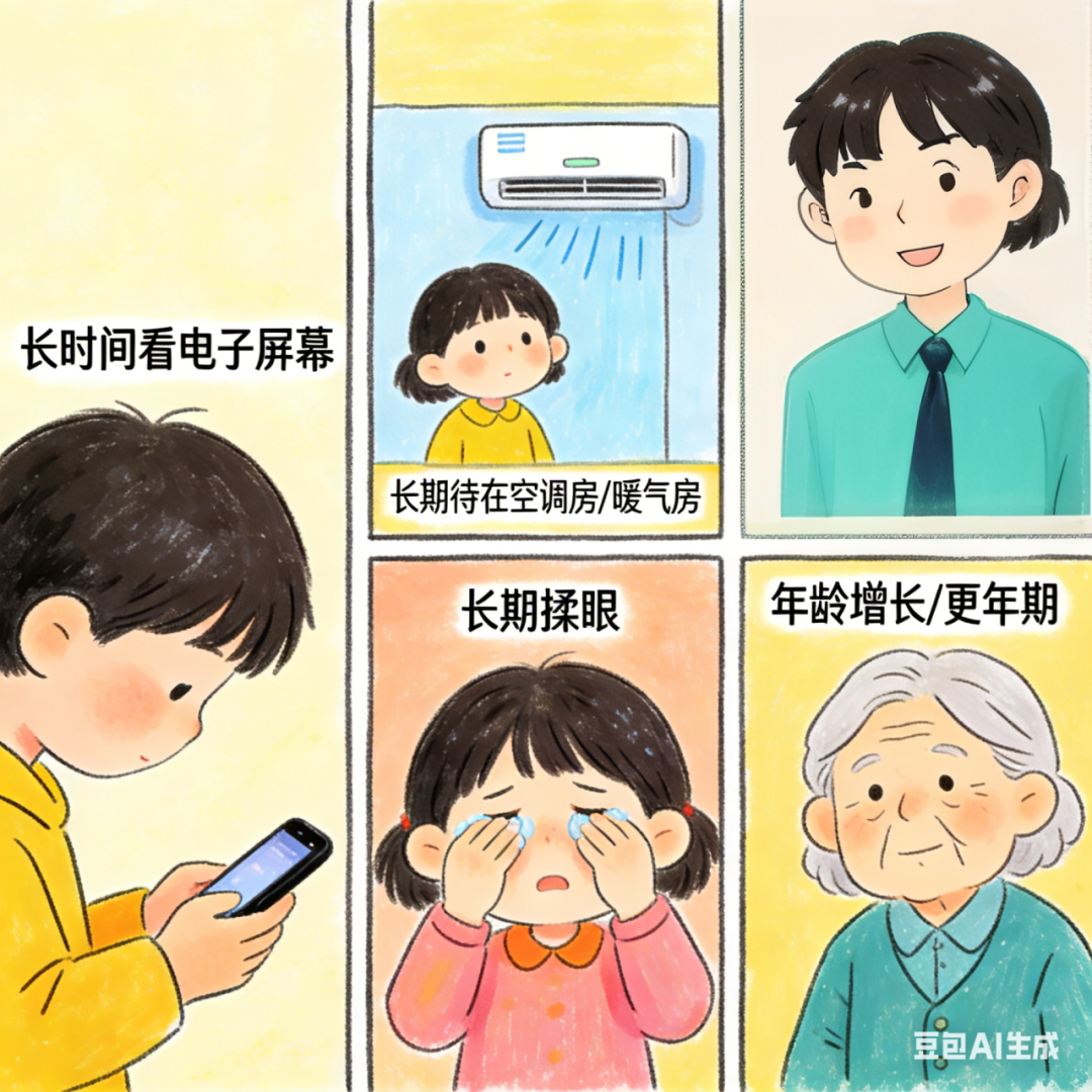 6.年龄增长、更年期、眼部手术、全身疾病或药物影响。